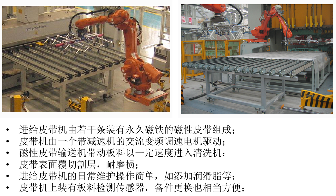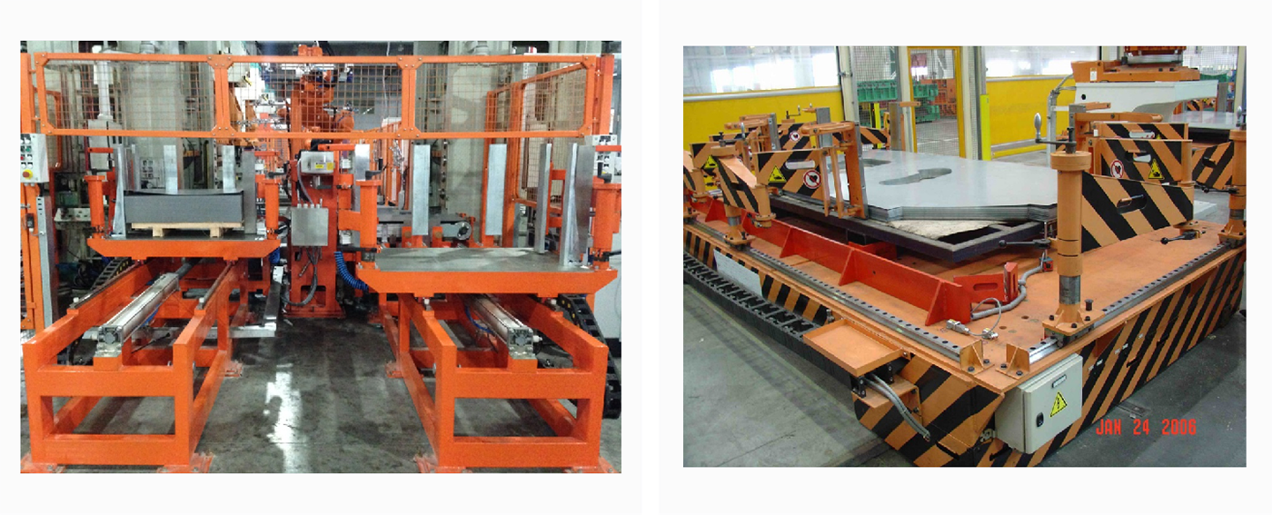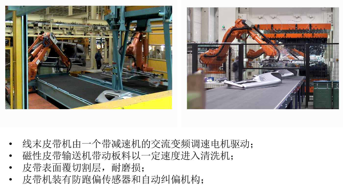 該設備主要用于汽車沖壓生產線,整體生產線由4臺壓機、6臺大型機器人組成。整條線完全自動化生產,控制簡單,減輕工人勞動強度,同時免于工人在沖壓機中工作,極大的提高了安全性。系統滿足24h不間斷生產,生產節拍達到11件/分鐘。整條生產線投產后節約人力80人。